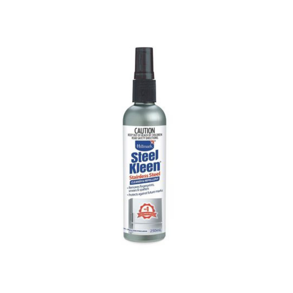 Hillmark Steel Kleen is perfect for use on stainless steel. Its unique formulation cleans fingerprints, smears and spatters, and leaves a protective film to repel future marks.